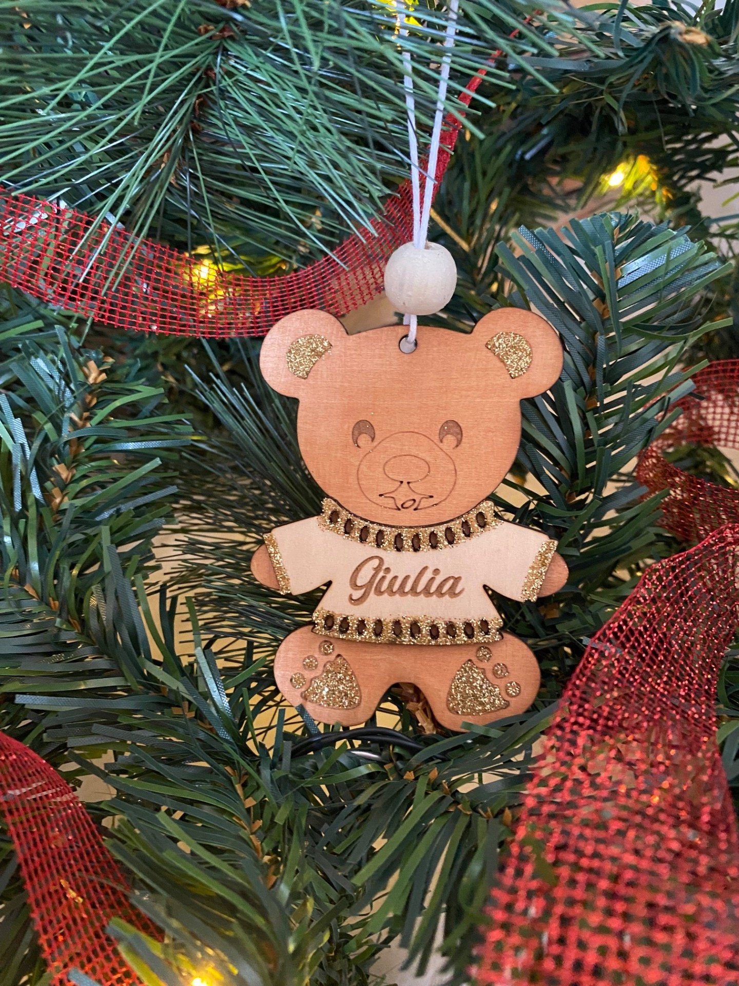 Faites entrer la tendresse dans votre sapin avec notre boule de Noël “Ourson”, personnalisable avec le prénom de votre enfant.